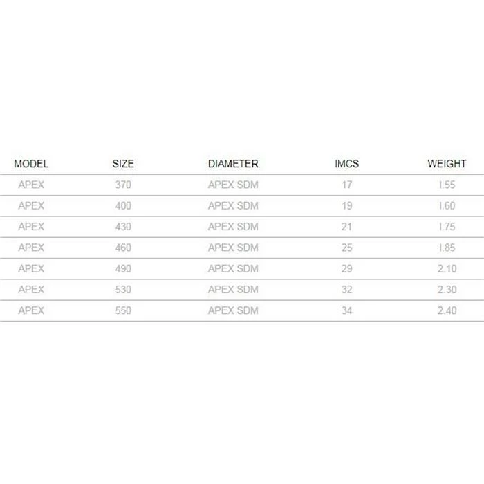 | Taille | 400, 430, 460, 490, 530, 550 |